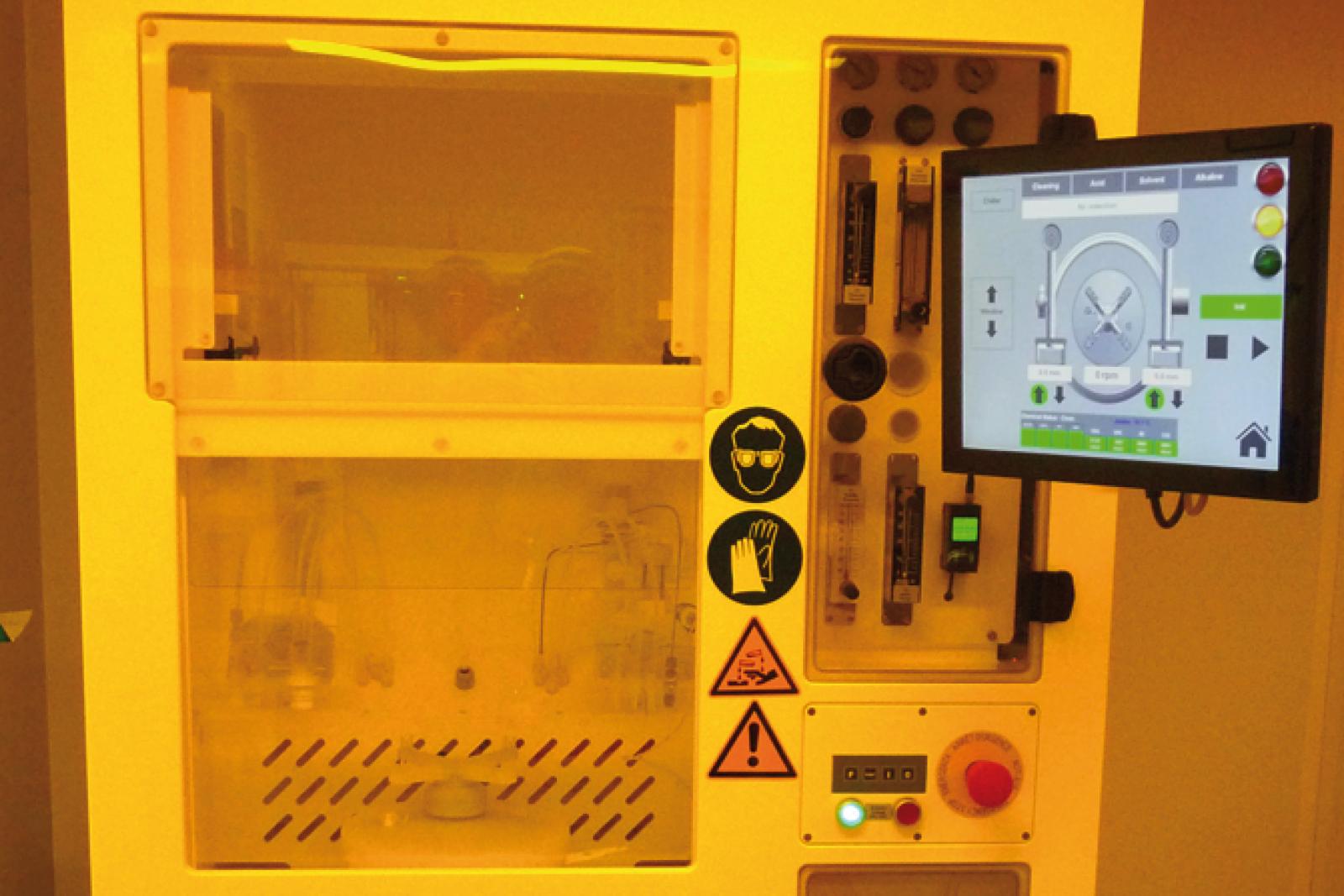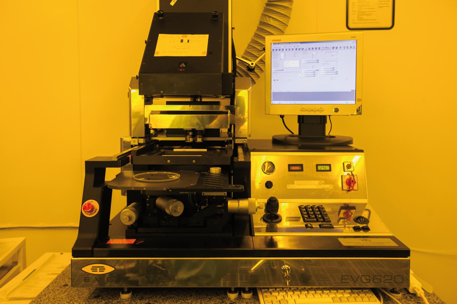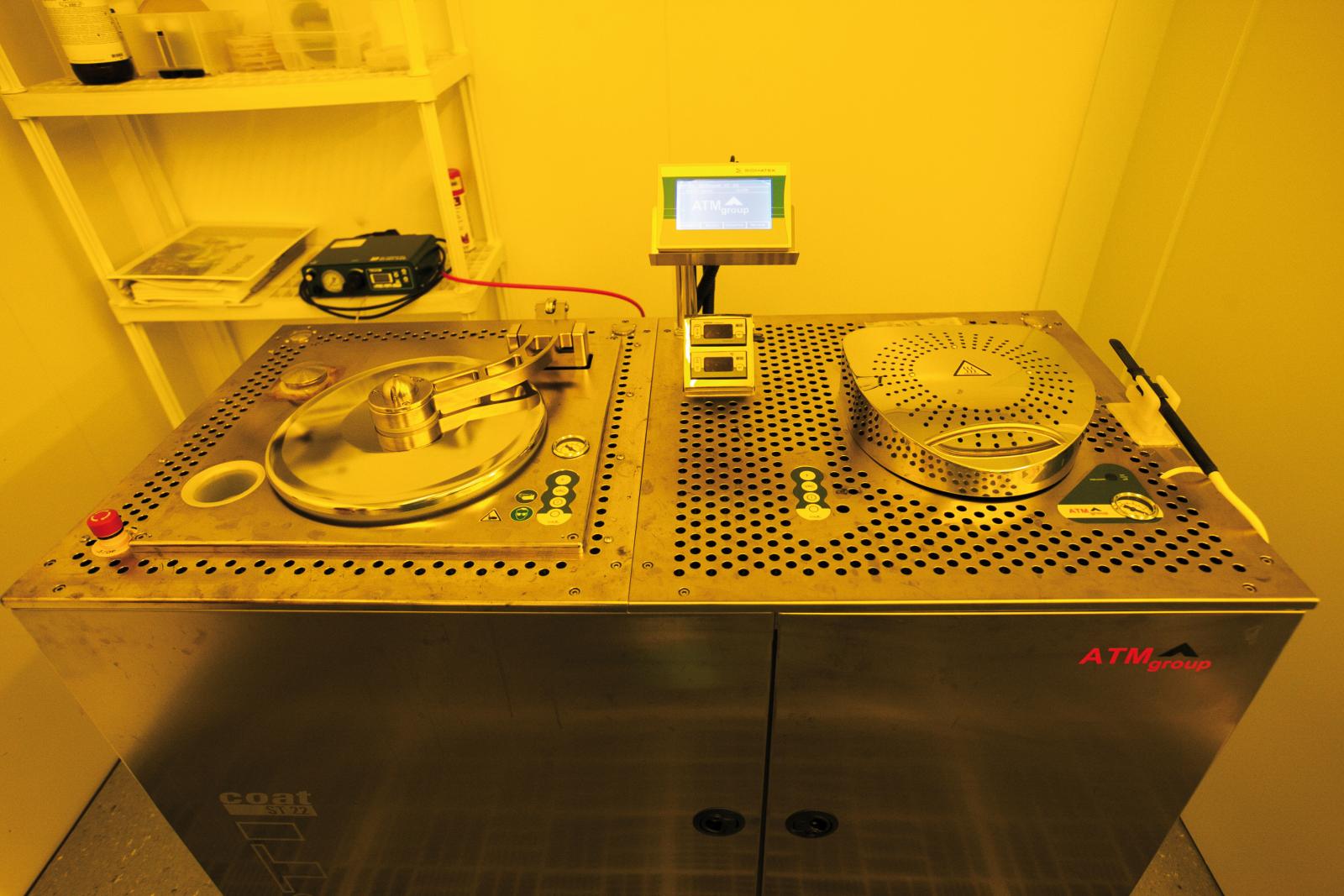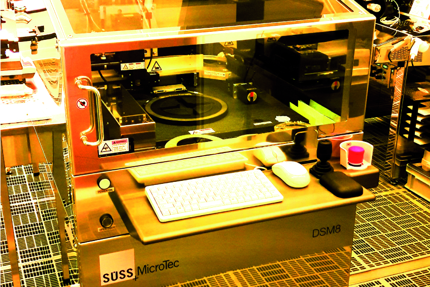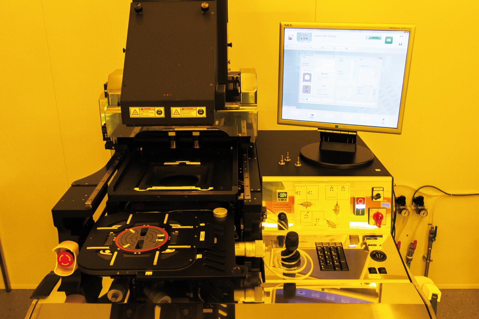But the first step where it all starts is the definition of the design by our optical mask generator. We manufacture a glass-chromium plate which will allow the reproduction in several copies of the patterns on the substrates.