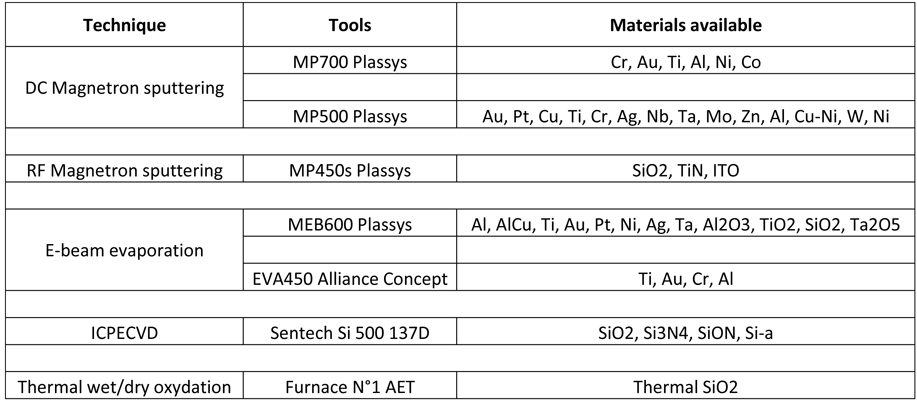 Within FEMTO-ST it exists three deposition techniques for the thin film deposition: