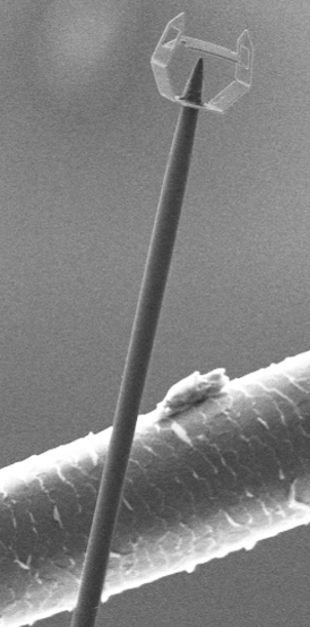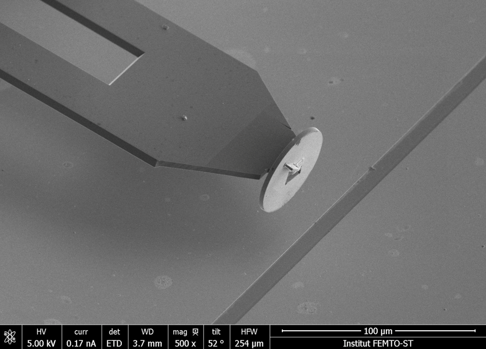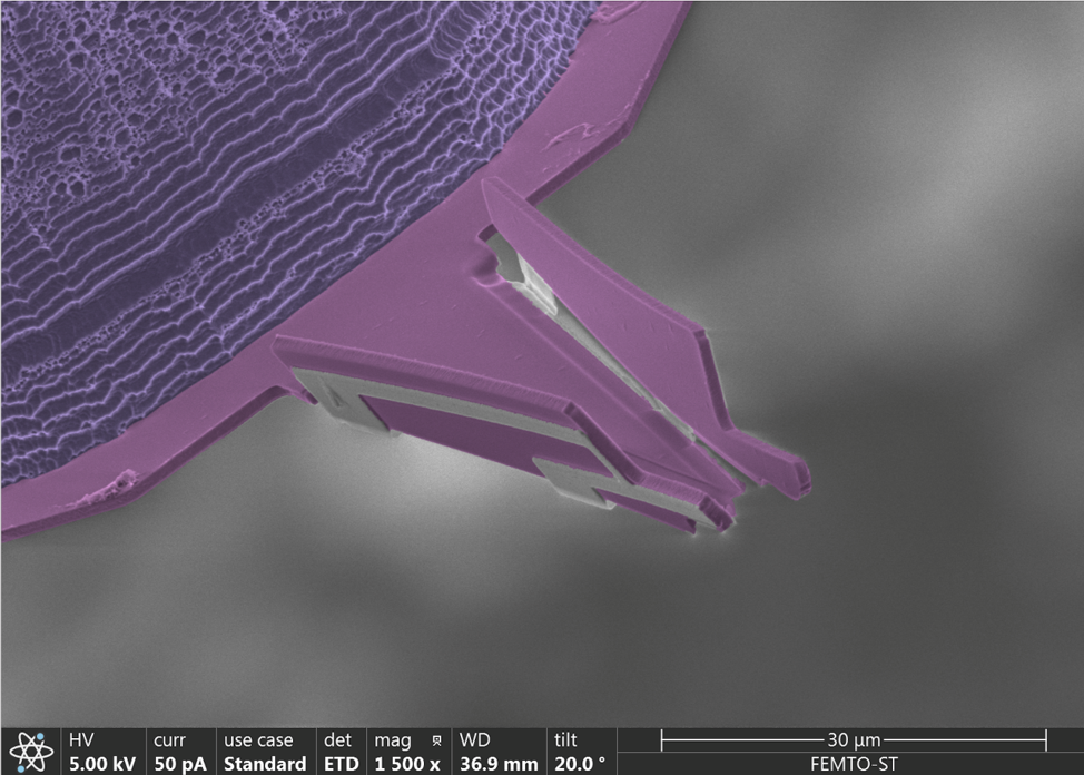Savoir faire spécifique : assemblage micro et nanométrique sous vide à l’aide d’un robot SmartAct et d’une très haute résolution (FEG), usinage FIB